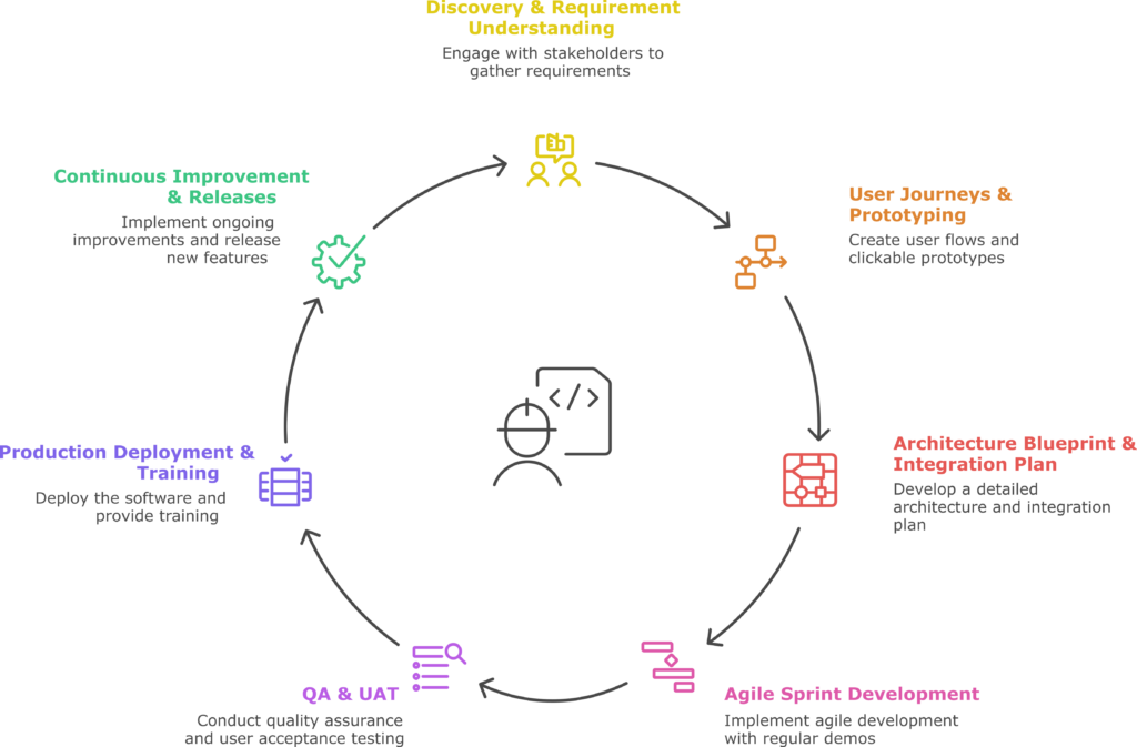 Whether it’s enterprise platforms, operational systems, or innovative digital products, we collaborate closely to design and deliver solutions with clear milestones and measurable outcomes.